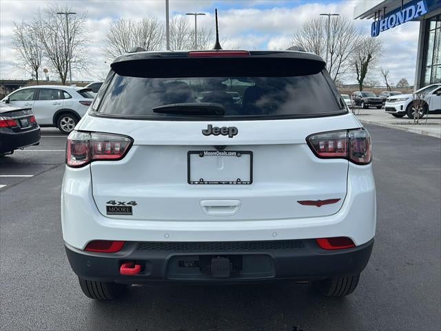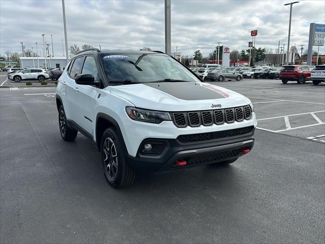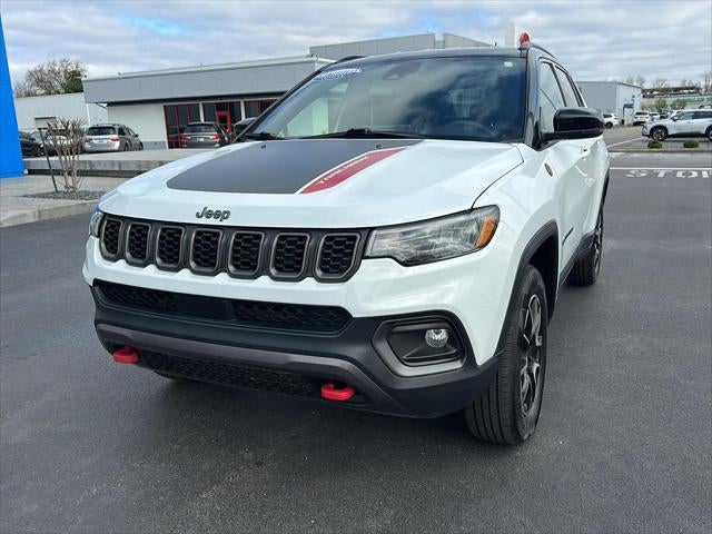 This 2025 Jeep Compass Trailhawk, has a Bright White Clearcoat exterior and Ruby Red/Black interior color with only 28,174 miles. Stock Number HG0070. You can connect